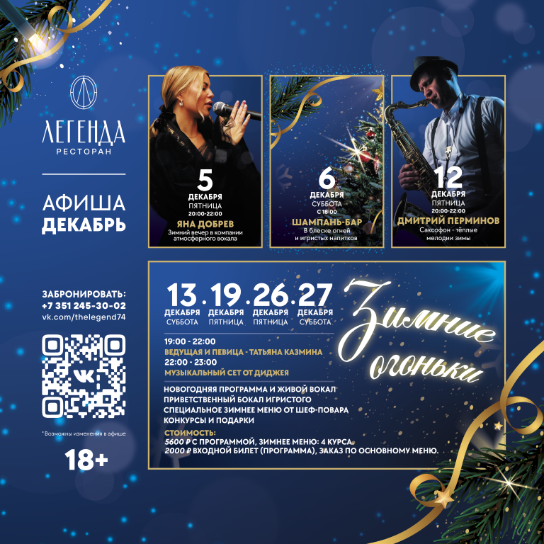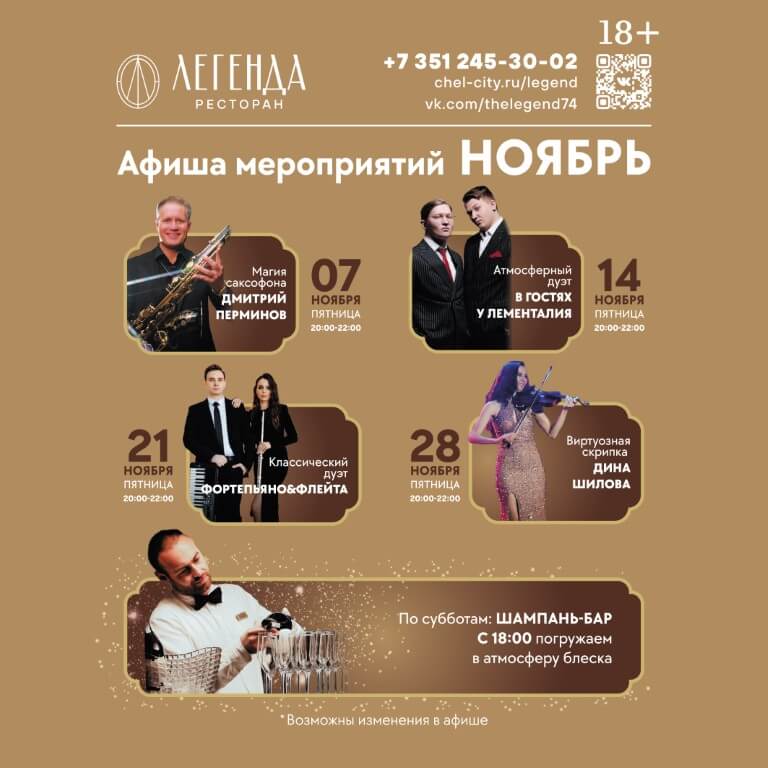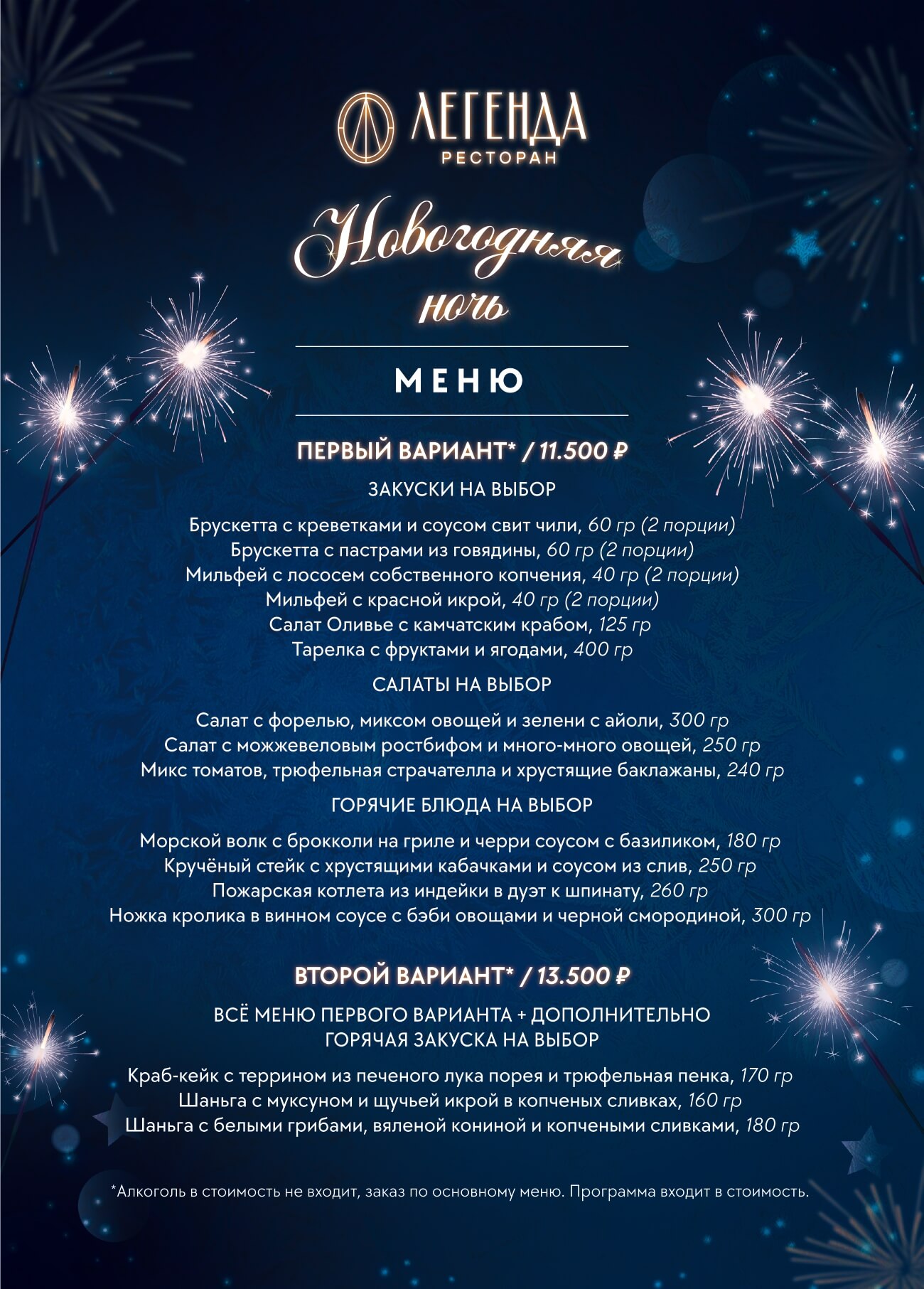 - 3 меню: банкетное, фуршетное, ресторана «Легенда»